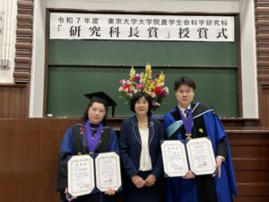 ボさんと王さんは農学生命科学研究科長賞を受賞しました。
