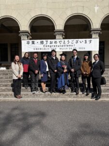 3月24日に学位授与式が執り行われました。ボ アロンゴーワさんが博士課程を修了し、山田 剛史さんと王 靖源さんが修士課程を修了しました。